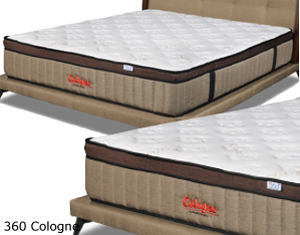 360 Cologne* Thickness : 12" * Spring : Inner Spring * Comfort Layer : E-Latex Eurotop * Comfort Fabric : Organic Cotton * Bridge Layer : Coconut Fibre * Edge Support : Enhanced Single : Super Single : Queen : King : |