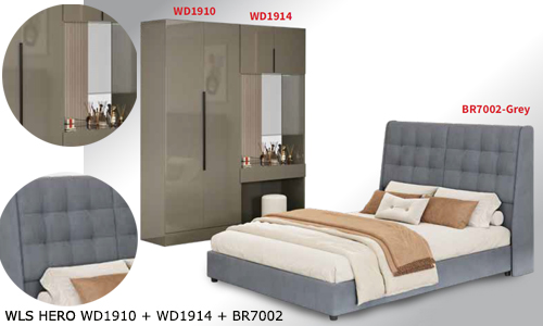 ![]() WLS HERO WD1910 + WD1914 + BR7002 Bedframe BR7002-Grey - H1240 x D2190 x W1520MM Wardrobe WD1910 - H2000 x D480 x W800MM Wardrobe WD1914 - H2000 x D480 x W800MM RM 1,799 Set |