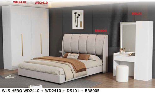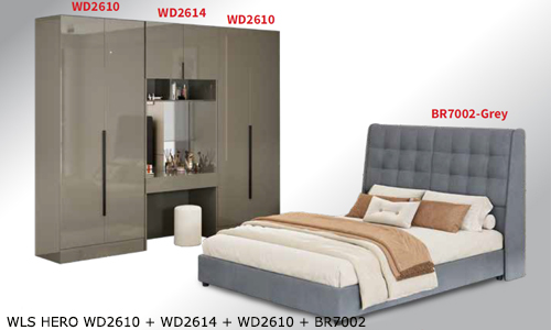 ![]() WLS HERO WD2610 + WD2614 + WD2610 + BR7002 Bedframe BR7002-Grey - H1240 x D2190 x W1560MM Stool - H400 x D330 x W330MM Wardrobe WD2610 - H2400 x D500 x W800MM Wardrobe WD2614 - H2400 x D500 x W800MM RM 2,799 Set |