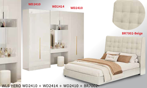 ![]() WLS HERO WD2410 + WD2414 + WD2410 + BR7002 Bedframe BR7002-Beige - H1240 x D2190 x W1560MM Stool - H420 x D330 x W330MM Wardrobe WD2410 - H2400 x D580 x W800MM Wardrobe WD2414 - H2400 x D580 x W800MM RM 2,799 Set |