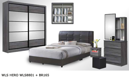 ![]() WLS HERO WLS8801 + BR165 (SL) Bedframe BR165 - H1080 x D2060 x W1520MM Dresser - H1670 x D390 x W690MM Sidetable - H400 x D340 x W380MM Wardrobe - H2400 x D570 x W2300MM RM 2,569 Set |