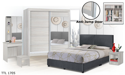 ![]() TTL 1705 (8' x 8') Queen - H42" x D79" x W60" Dresser Table w/ Stool - H66" x D16" x W24" Wardrobe - H93" x D23" x W93" Side Table - H13" x D12" x W12" RM 2,409 Set |