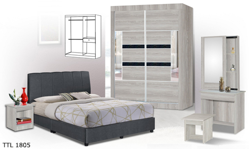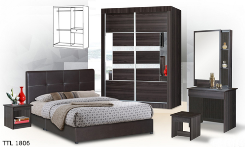 ![]() TTL 1805 (5' x 6.5') Queen - H42" x D79" x W60" Dresser Table w/ Stool - H66" x D16" x W24" Wardrobe - H78" x D21" x W59" Side Table - H13" x D12" x W12" RM 1,909 Set |