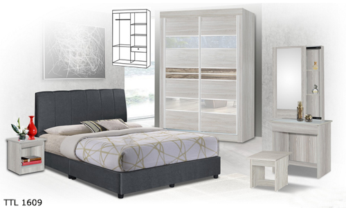 ![]() TTL 1512NW (4' x 6') Queen - H42" x D79" x W60" Dresser Table w/ Stool - H65" x D16" x W18" Wardrobe - H72" x D21" x W45" RM 1,169 |