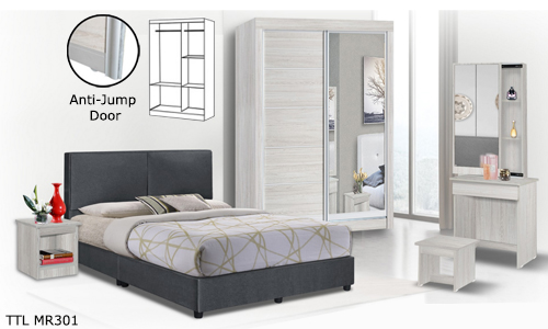 ![]() TTL MR301 Queen - H42" x D79" x W60" Dresser Table w/ Stool - H66" x D16" x W24" Wardrobe - H72" x D21" x W45" Side Table - H13" x D12" x W12" RM 1,579 Set |