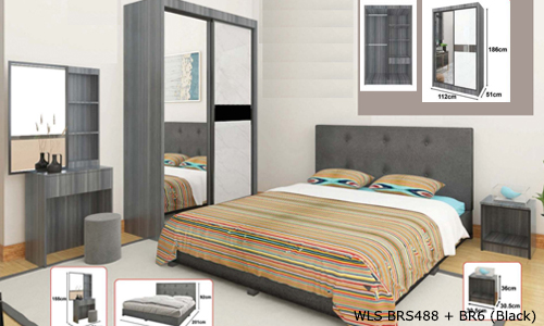 ![]() WLS BRS488 Black + BR6 Black. Queen Bed - H920 x D2010 x W1530MM Dressing Table - H1550 x D380 x W610MM Bedside Table - H360 x D305 x W305MM - 1X Wardrobe - H1860 x D510 x W1120MM RM 1,199 Set |