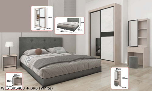 ![]() WLS BRS488 White + BR6. Queen Bed - H920 x D2010 x W1530MM Dressing Table - H1550 x D380 x W610MM Bedside Table - H360 x D305 x W305MM - 1X Wardrobe - H1860 x D510 x W1120MM RM 1,199 Set |