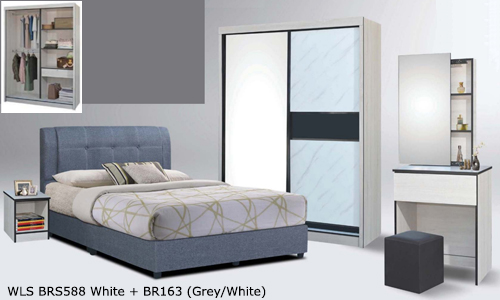 ![]() WLS BRS588 White + BR163. Queen Bed - H1080 x D2060 x W1520MM Dressing Table - H1550 x D380 x W600MM Bedside Table - H390 x D330 x W330MM - 1X Wardrobe - H2000 x D540 x W1500MM RM 1,599 Set |
