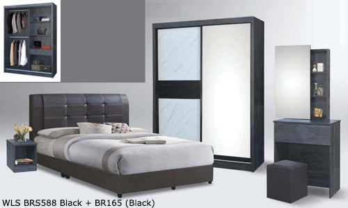 ![]() WLS BRS588 Black + BR165. Queen Bed - H1080 x D2060 x W1520MM Dressing Table - H1550 x D380 x W600MM Bedside Table - H390 x D330 x W330MM - 1X Wardrobe - H2000 x D540 x W1500MM RM 1,599 Set |