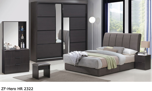 ![]() ZF-Hero HR 2322 Queen - H45.5" x D84" x W60" RM 939 King - H45.5" x D84" x W72" RM 1,139 Wardrobe - H95" x D23.5" x W94.5" RM 2,759 Dressing Table - H64" x D16" x W30" RM 839 Side Table - H18.5" x D14" x W15.5" RM 199 each Stool - H16" x D15" x W15" RM 199 |