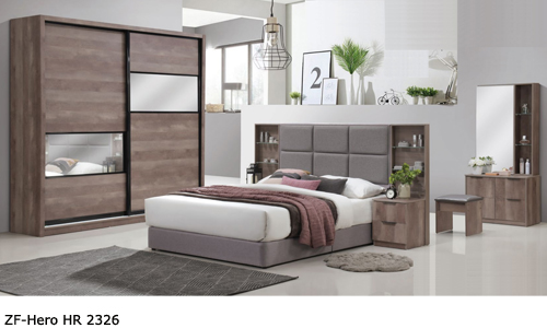 ![]() ZF-Hero HR 2326 Queen - H48" x D79.5" x W60" RM 939 King - H48" x D79.5" x W72" RM 1,139 Wardrobe - H95" x D23.5" x W94.5" RM 2,759 Dressing Table - H66.5" x D16" x W30" RM 839 Side Table - H18.5" x D14" x W15.5" RM 199 each Stool - H16" x D15" x W15" RM 199 Display Box x 2 RM 399 |