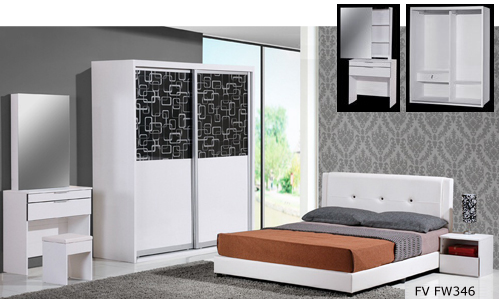 ![]() FV FW346 Queen - H920 x D1530 x W2010MM King - H920 x D1530 x W2010MM 5.5' Wardrobe - H1990 x D595 x W1660MM Dressing Table - H1670 x D360 x W760MM Side Table - H375 x D360 x W400MM |