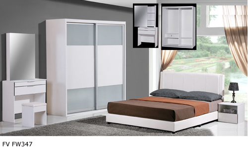 ![]() FV FW347 Queen - H920 x D1530 x W2010MM King - H920 x D1530 x W2010MM 5.5' Wardrobe - H1990 x D595 x W1660MM Dressing Table - H1670 x D360 x W760MM Side Table - H375 x D360 x W400MM |