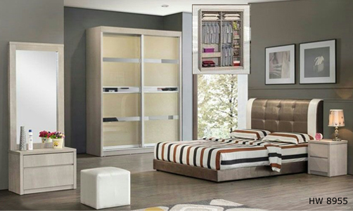![]() HW 8955 Queen - H42.5" x D81" x W60" Dressing Table - H74" x D15.5" x W28" Side Table - H13.5" x D15.5" x W15.5" Wardrobe 6' - H94.5" x D24" x W72" Wardrobe 5' - RM 2,969 Set Wardrobe 6' - RM 3,169 Set Wardrobe 8' - RM 3,369 Set |