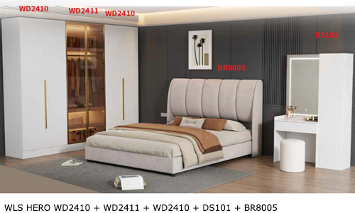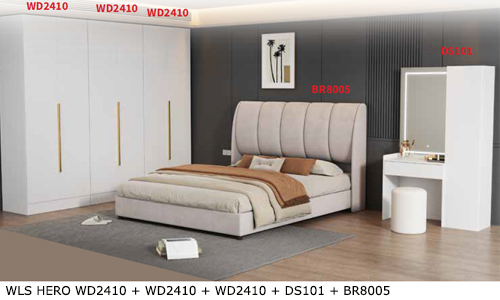 ![]() WLS HERO WD2410 + WD2411 + WD2410 + DS101 + BR8005 Bedframe BR8005 - H1230 x D1570 x W2060MM Dresser DS101 - H1800 x D400 x W1100MM Stool - H420 x D330 x W330MM Wardrobe WD2410 - H2400 x D580 x W800MM Wardrobe WD2411 - H2400 x D580 x W800MM RM 3,989 Set |