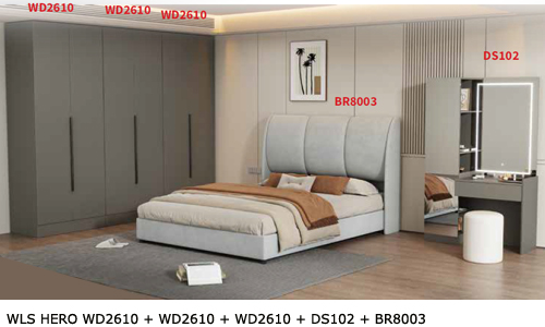 ![]() WLS HERO WD2710 + WD2710 + WD2710 + DS103 + BR8005 Bedframe BR8005 - H1230 x D2060 x W1570MM Dresser DS103 - H1800 x D400 x W1000MM Stool - H420 x D330 x W330MM Wardrobe WD2710 - H2400 x D580 x W800MM RM 4,199 Set |