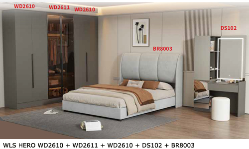 ![]() WLS HERO WD2610 + WD2611 + WD2610 + DS102 + BR8003 Bedframe BR8003 - H1230 x D2060 x W1570MM Dresser DS102 - H1800 x D400 x W1100MM Stool - H420 x D330 x W330MM Wardrobe WD2610 - H2400 x D550 x W800MM Wardrobe WD2611 - H2400 x D550 x W800MM RM 3,989 Set |
