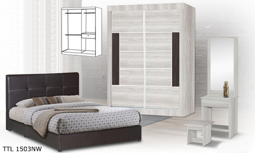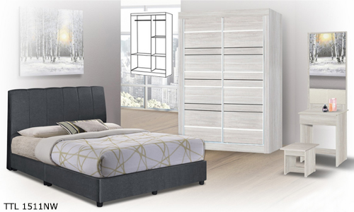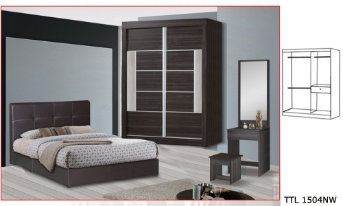 ![]() TTL 1511NW (4' x 6') Queen - H42" x D79" x W60" Dresser Table w/ Stool - H65" x D16" x W18" Wardrobe - H72" x D21" x W45" RM 1,169 |