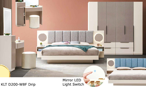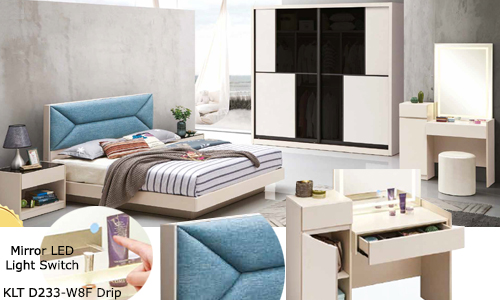 ![]() KLT D233-W8F Drip 5' Bed - H1120 x D2000 x W1600MM RM 2,149 6' Bed - H1120 x D2000 x W1900MM RM 2,389 Side Table - H500 x D420 x W640MM RM 409 Dresser - H1780 x D420 x W1100MM RM 1,859 4D Chest - H1150 x D480 x W810MM RM 1,749 Wardrobe 5.5F - H2400 x D610 x W1620MM RM 3,659 Wardrobe 6F - H2400 x D610 x W1830MM RM 4,149 Wardrobe 8F - H2400 x D610 x W2420MM RM 4,629 |