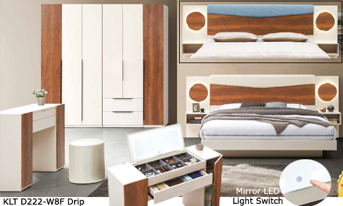 ![]() KLT D222-W8F Drip 5' Bed + ST (2) - H1120 x D2000 x W2390MM RM 3,019 6' Bed + ST (2) - H1120 x D2000 x W2690MM RM 3,309 Dresser - H850 x D610 x W2420MM RM 1,949 4D Chest - H1150 x D480 x W810MM RM 1,749 Wardrobe 5.5F - H2400 x D610 x W1620MM RM 3,659 Wardrobe 6F - H2400 x D610 x W1830MM RM 4,149 Wardrobe 8F - H2400 x D610 x W2420MM RM 4,629 |