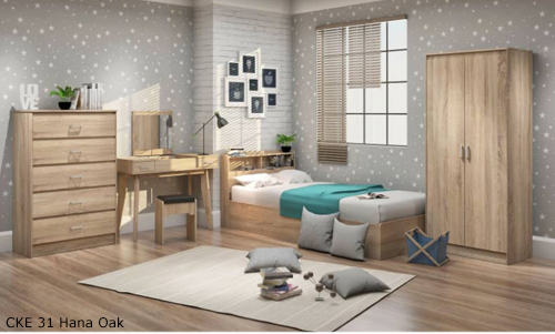![]() CK 31 Hana Oak. Single Bed - H760 x D980 x W2065MM RM 499 Chest of Drawers - H1200 x D400 x W800MM RM 489 Dresser - H750 x D450 x W1000MM RM 489 Wardrobe - H1680 x D430 x W765MM RM 499 |