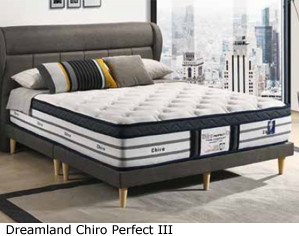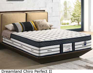 ![]() Dreamland Chiro Perfect III * Anti-Dust mites * Medium firm support * High density foam firmer support * Miracoil (TM) springs - world renowned spring system * Feel - Firm * Thickness 12" * 10 Years Warranty Single - Super Single - Queen - King - |