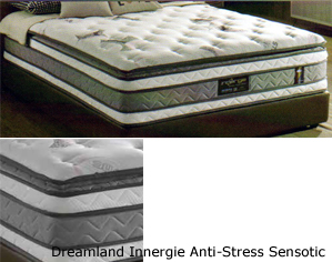 ![]() Dreamland Innergie Anti-Stress Sensotic * The Pocket Spring System: Individually Encased Pocket Spring * Discharges static and body tension * Transforms negative energy * 100% natural latex * 10 Year Warranty * Multi-layered and extra thick Plushtop and Eurotop * Feel - Soft * Thickness 14" Single Super Single Queen King |