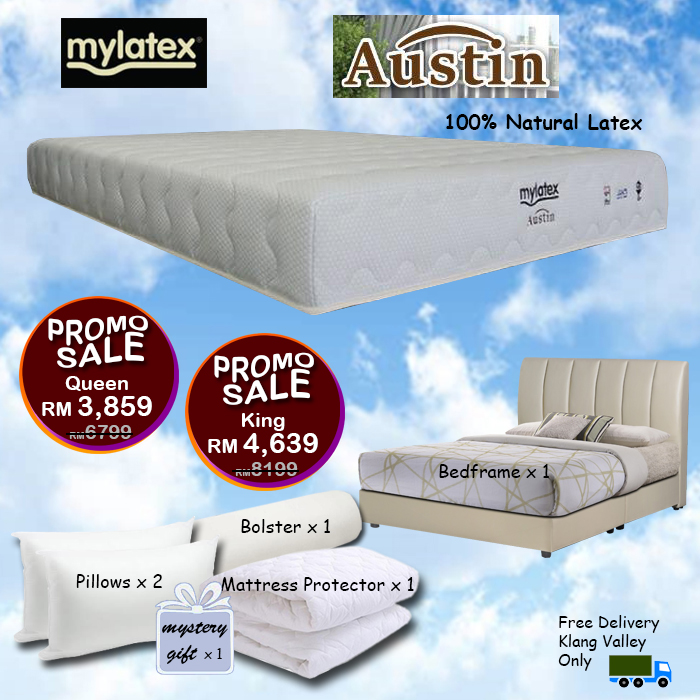 Mylatex Austin Mattress BUY 1 FREE 7 Goodies PROMOTION BUY Mylatex Austin QUEEN OR KING SIZE Mattress, YOU WILL GET 7 GOODIES FREE - 1 BEDFRAME - 2 PILLOWS - 1 MATTRESS PROTECTOR - 1 BOLSTER - 1 FREE DELIVERY to KLANG VALLEY ONLY - Together we also have a "SURPRISE MYSTERY GIFT" FOR YOU HURRY! DON'T MISS THIS OPPORTUNITY. PROMOTION ENDS DEC 31, 2025 Kindly contact 017 902 1133 for more info |