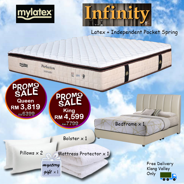 Mylatex Infinity Mattress BUY 1 FREE 7 Goodies PROMOTION BUY Mylatex Infinity QUEEN OR KING SIZE Mattress, YOU WILL GET 7 GOODIES FREE - 1 BEDFRAME - 2 PILLOWS - 1 MATTRESS PROTECTOR - 1 BOLSTER - 1 FREE DELIVERY to KLANG VALLEY ONLY - Together we also have a "SURPRISE MYSTERY GIFT" FOR YOU HURRY! DON'T MISS THIS OPPORTUNITY. PROMOTION ENDS DEC 31, 2025 Kindly contact 017 902 1133 for more info |