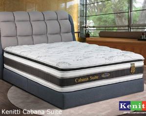 Kenitti Villa Suite * Kenitti High Tensile Bonnel Spring * Luxury imported knitted ticking with soft touch treatment * Premium Quality 100% Natural Latex * Non Flip Single Sided * Edge Stabilizer * Coconut fiber * 12" Top to bottom * 12 years warranty Single - RM 1,099 Super Single - RM 1,299 Queen - RM 1,669 King - RM 1,989 |