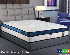Kenitti Master Suite * Kenitti High Tensile Bonnel Spring * Anti-Dustmite treated knitted fabric * Non Flip Single Sided * Edge Stabilizer * Coconut fiber * 13" Top to bottom * 12 years warranty Single - RM 969 Super Single - RM 1,129 Queen - RM 1,369 King - RM 1,669 |