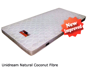 Unidream Natural Coconut Fibre * 100% Natural Coconut Fibre Husk * Quilted Damask / Jacquad Fabric * Anti Fungal * Turn Free * Anti-Dust Mite * Firm Support * Minimum Disturb * Proper Support * Water Penetration (Coconut Fibre) * Air Ventilation (Coconut Fibre) * Warranty 6 Years * Single, Super Single, Queen, King |