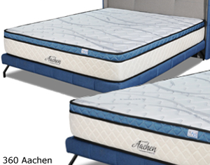 360 Aachen* Thickness : 10" * Spring : Inner Spring * Comfort Layer : HD Foam Eurotop * Comfort Fabric : Cool Max * Bridge Layer : Coconut Fibre * Edge Support : Enhanced Single : Super Single : Queen : King : |