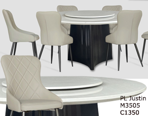 ![]() PL Justin (M3505 T100+C1350) Table M2505 T100 - H760 x D1350 x W1350 + 700MM RM 3,339 Table M3505 T100 - H760 x D1500 x W1500 + 800MM RM 4,069 Chair C1350 - H950 x D500 x W480MM RM 389 each |