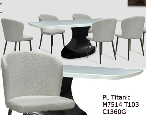 ![]() PL Titanic Table M6514 T103 - H760 x D1000 x W1800MM RM 3,099 Table M7514 T103 - H760 x D1100 x W2100MM RM 3,589 Chair C1360G - H850 x D500 x W490MM RM 369 |