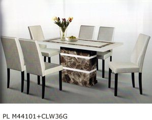 ![]() PL M44101+CLW36G Table : (Marble Top & Leg) - W800 x L1400MM RM 1,899 Chair : (PU Seat/Wooden Leg) RM 229 each |