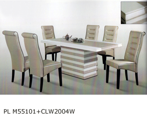 ![]() PL M55101+CLW2004W Table : (Marble Top & Leg) - W900 x L1600MM RM 2,369 Chair : (PU Seat/Wooden Leg) RM 269 each |