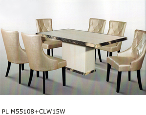 ![]() PL M55108+CLW15W Table : (Marble Top & Leg) - W900 x L1500MM RM 2,169 Chair : (PU Fabric Seat/Wooden Leg) RM 419 each |