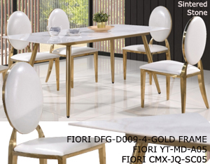 ![]() FIORI DFG-D009-4-GOLD FRAME FIORI YT-MD-A05 + FIORI CMX-JQ-SC05 Table - H760 x D900 x W1800MM RM 2,619 Chair - H950/440 x D470 x W530MM RM 629 each |