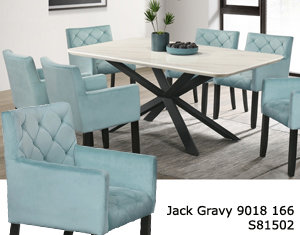 ![]() Jack Gravy 9018 166 + S81502 Table - H750 x D900 x W1800MM RM 2,189 Chair (FABRIC) - H865 x D615 x W575MM RM 539 each |