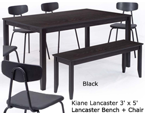 ![]() Kiane Lancaster 3' x 5' + Bench + Chair- Table - H750 x W900 x L1500MM RM 919 Bench - H450 x D320 x W1200MM RM 459 Chr - H790/460 x D540 x W460MM RM 519 each |