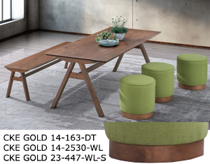 ![]() CKE GOLD 14-163-DT + CKE GOLD 14-2530-WL + CKE GOLD 23-447-WL-S Table - H750 x D850 x W2000MM RM 1,239 Bench - H445 x D385 x W1700MM RM 529 Stool - H470 x Diam. 430MM RM 269 each |