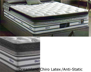 Dreamland Chiro Latex/Anti-Static * Miracoil (TM) - the world's most advanced spring system * Anti-static memory foam to de-stress the body & relieve body tension * 100% natural latex * 10 years Warranty * Feel : Soft * Thickness : 15" Single Super Single Queen King |