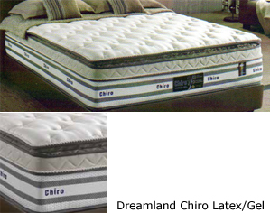 Dreamland Chiro Latex/Gel * Miracoil (TM) - the world's most advanced spring system * Cooler, pressure relieved sleep * 100% natural latex * Gel-infused memory foam * 10 years Warranty * Feel : Soft * Thickness : 15" Single Super Single Queen King |