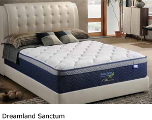 ![]() Dreamland Sanctum * Individually encased 3-Zone Pocket Springs * Latex foam comfort * Even pressure distribution * Feel - Soft * Thickness 13" * 10 Years Warranty Single Super Single Queen King |
