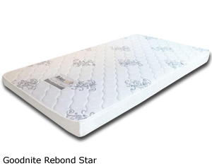 ![]() Goodnite Rebond Star Premium Quality Rebord Foam Anti-Dust Mite Anti-Fungus & Anti-Bacteria Good Spinal Support Environmental Friendly Thickness 5" & 8" 3 Years Warranty 5" Single - RM 396 5" Super Single - RM 470 8" Queen - RM 966 8" King - RM 1,184 |