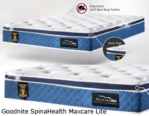 ![]() Goodnite SpinaHealth Maxcare Lite 3 Zone Pocketed System Eco Latex High Density Foam Encased Foam System Euro Top Imported Anti Bed Bug Fabric Medium Firm Thickness 10" 12 Years Warranty Silk Touch Latex Pillow x 2 Single - RM 1,668 Super Single - RM 1,832 Queen - RM 2,592 King - RM 2,946 |