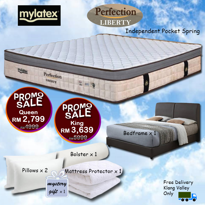 Mylatex Liberty Mattress BUY FREE 7 Goodies PROMOTION BUY Mylatex Liberty QUEEN OR KING SIZE Mattress, YOU WILL GET 7 GOODIES FREE - 1 BEDFRAME - 2 PILLOWS - 1 MATTRESS PROTECTOR - 1 BOLSTER - 1 FREE DELIVERY to KLANG VALLEY ONLY - Together we also have a "SURPRISE MYSTERY GIFT" FOR YOU HURRY! DON'T MISS THIS OPPORTUNITY. PROMOTION ENDS DEC 31, 2025 Kindly contact 017 902 1133 for more info |