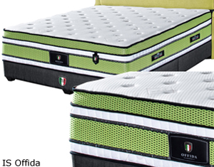 ![]() Offida * Chiropractic Coil * 4D Green Top Plush-top * Ribbon + 4D Green * Tuck & Jump Quilting * Teflon Fabric * Anti-Dust mite * Thickness 13" Mattress Queen - RM 4,200 Mattress King - RM 4,800 |