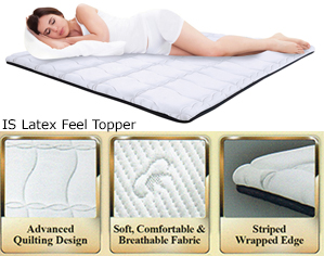 ![]() Latex Feel Topper * Advanced Quilting Design * Soft, Comfortable & Breathable Fabric * Striped Wrapped Edge * Turn Free * Anti-Dust Mite * Breathable System * Thickness 2" Single - RM 492 Super Single - RM 573 Queen - RM 654 King - RM 837 |